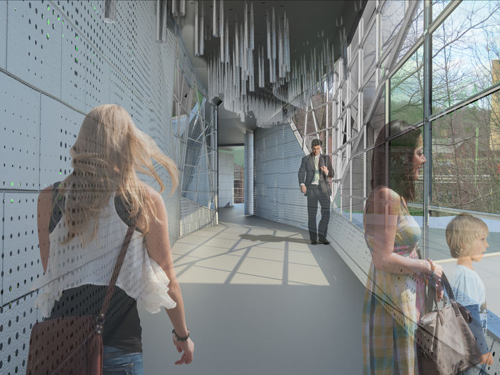 Master's Thesis Project uses a series of music experiences that choreograph movement and encourage interaction with the built environment. I created a series of models that produce sound, using different types of wood and metal. This aspect of the experimentation processes looks at the acoustic and spatial properties of materials. Using different materials (mostly woods and metals), I created a series of sound models. The series is a type of library of potential experiences. The models are made with lengths of steel rods, tubes, and wire, strips of steel, bronze, and copper, strips of birch wood and pieces of bass wood. The models become an interactive surface, a musical instrument that can be manipulated to produce sound. In other words the models themselves are “playable”.